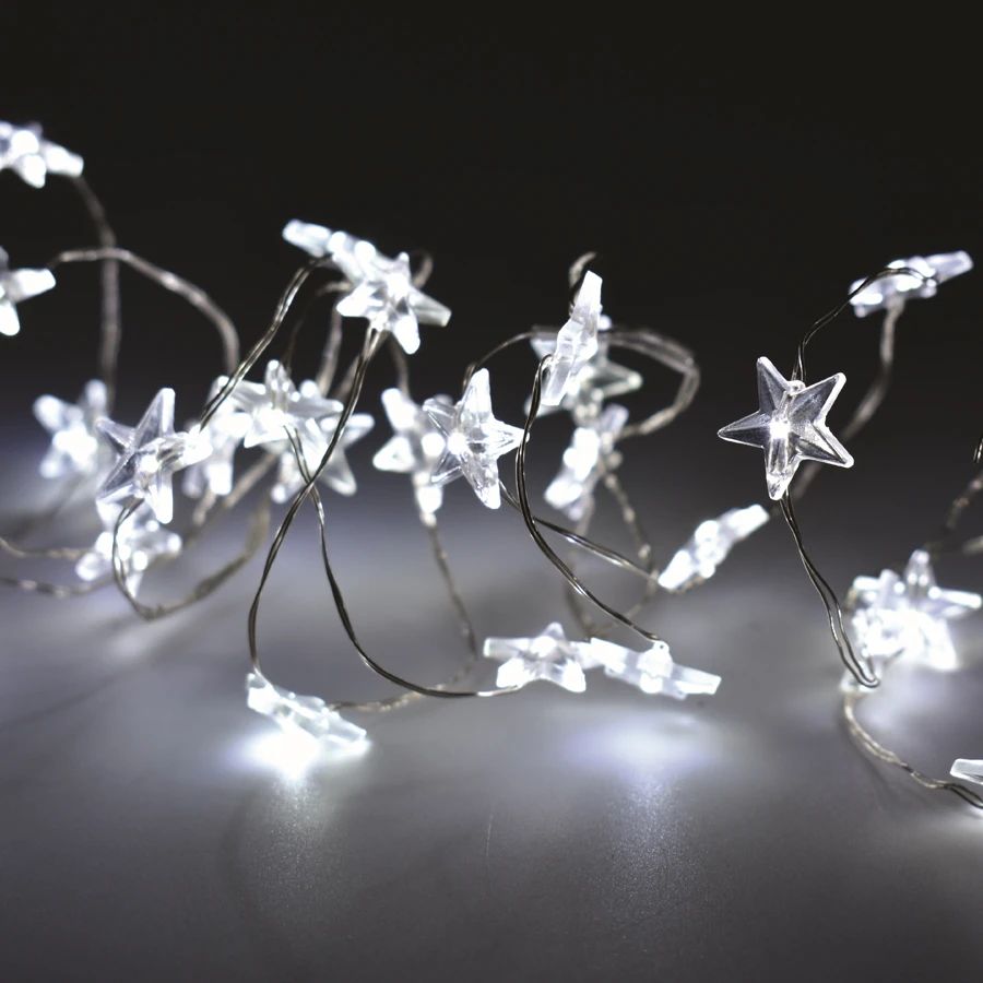 La Catena Luminosa con 50 Stelline Trasparenti Nano LED a Batteria di Prequ è una graziosa catena di nanoled a forma di stelle trasparenti, attaccate ad un filo metallico sottilissimo e modellabile, che permette di posizionarle in qualsiasi modo e forma. La Catena Luminosa con 50 Stelline Trasparenti Nano LED a Batteria può essere posizionata comodamente in diversi posti, grazie alla sua alimentazione a batteria, che non necessita quindi della vicinanza con una presa di corrente.Â