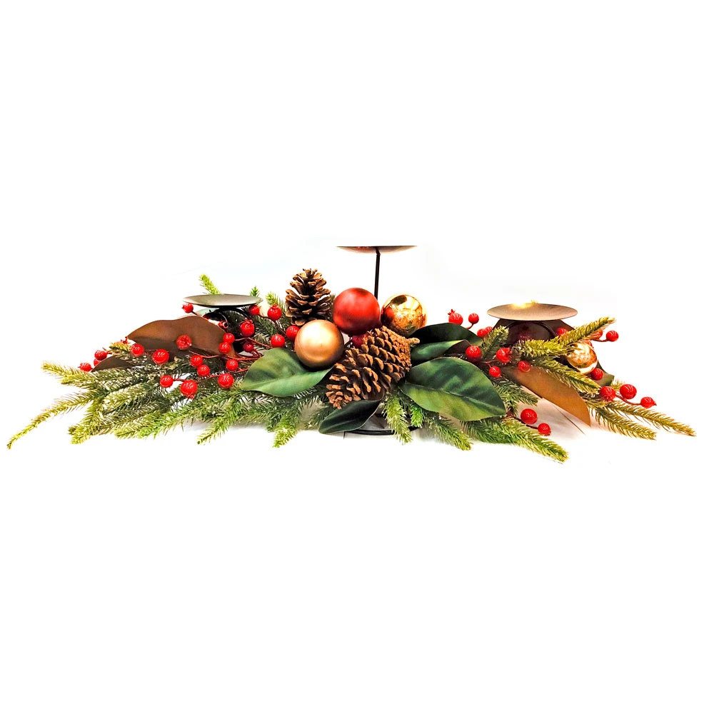 Maggiori informazioni Centrotavola Portacandele 3 Posti con Decorazioni Natalizie Bacche e Pigne: