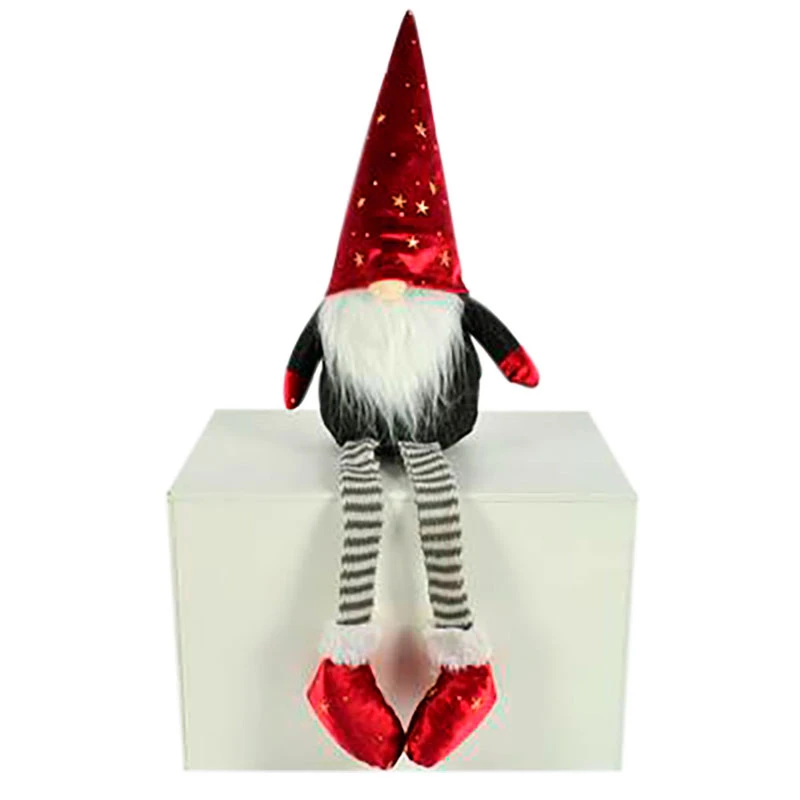 Christmas Decoration Gnomo Seduto con Cappello di Christmas Decoration è un dolce gnomo con gambe lunghe e cappello rosso a stelline, rimane seduto da solo. Altezza: 53 cm.