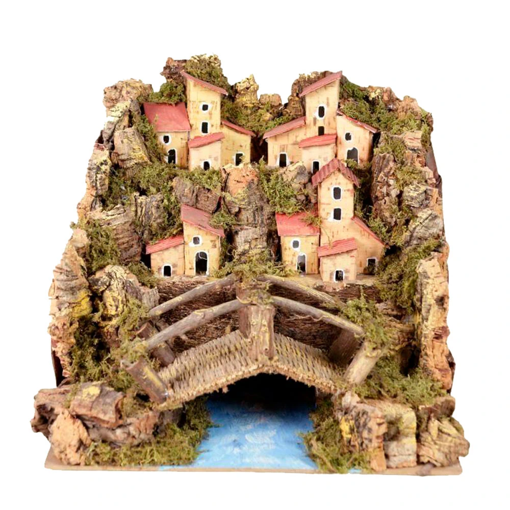 Completa il tuo Presepe Natalizio con il Paesaggio Presepe con Ponte su Fiume e Luci 24x21x21 cm, realizzato artigianalmente con finiture in legno, muschio e sughero. Il prodotto rappresenta un paesaggio roccioso con case addossate e in primo piano raffigura un ponte su un fiume. È dotato di luci ed è perfetto per essere inserito nel tuo presepe! Nel Paesaggio Presepe con Ponte su Fiume e Luci lo spazio vuoto consente di ospitare diversi personaggi per ricreare le tue scene preferite e dare sfogo alla tua fantasia compositiva!