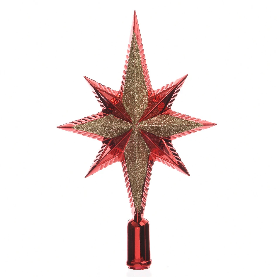 - Puntale decorativo per albero di Natale a forma di cometa color rosso con glitter