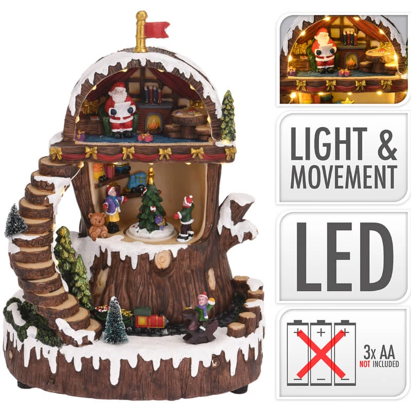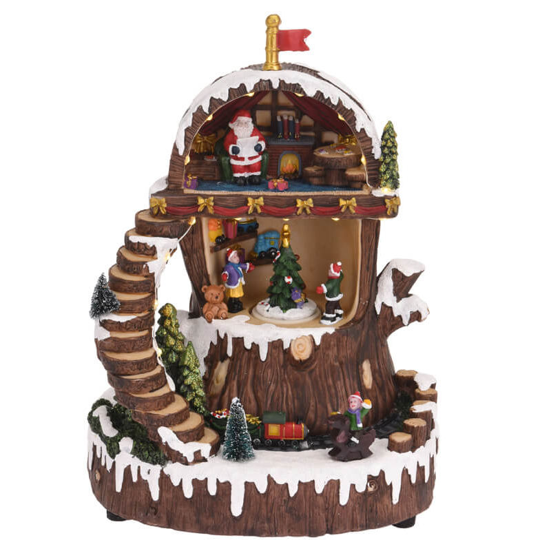 La Scena di Natale Albero in Resina con Luce e Movimento ti porterà senza dubbio in una bellissima atmosfera natalizia. La Scena di Natale nel tronco d’albero produce luci e movimento ed è adatta sia come decorazione natalizia per la tua casa, che come idea regalo.