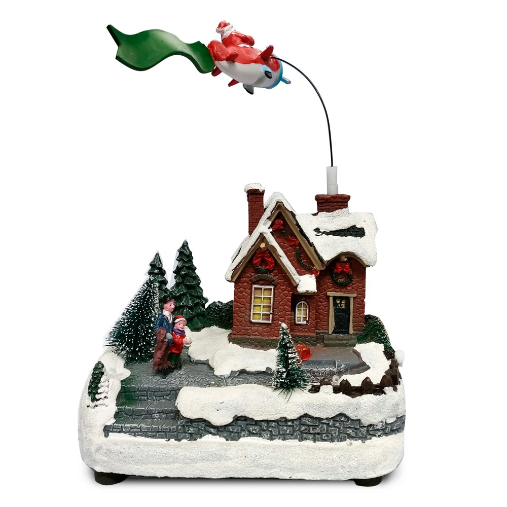 Decora la tua casa con lo Scenario Natalizio Babbo Natale e Aereo con Luci e Suoni! La scenetta natalizia raffigura un paesaggio innevato con un caseggiato e degli abeti e Babbo Natale che vola in aereo! Lo Scenario Natalizio Babbo Natale e Aereo con Luci e Suoni è una scenetta con movimenti: Babbo Natale vola con il suo aereo! Oltre ai movimenti la giostrina ha una deliziosa canzone natalizia di sottofondo e si illumina!