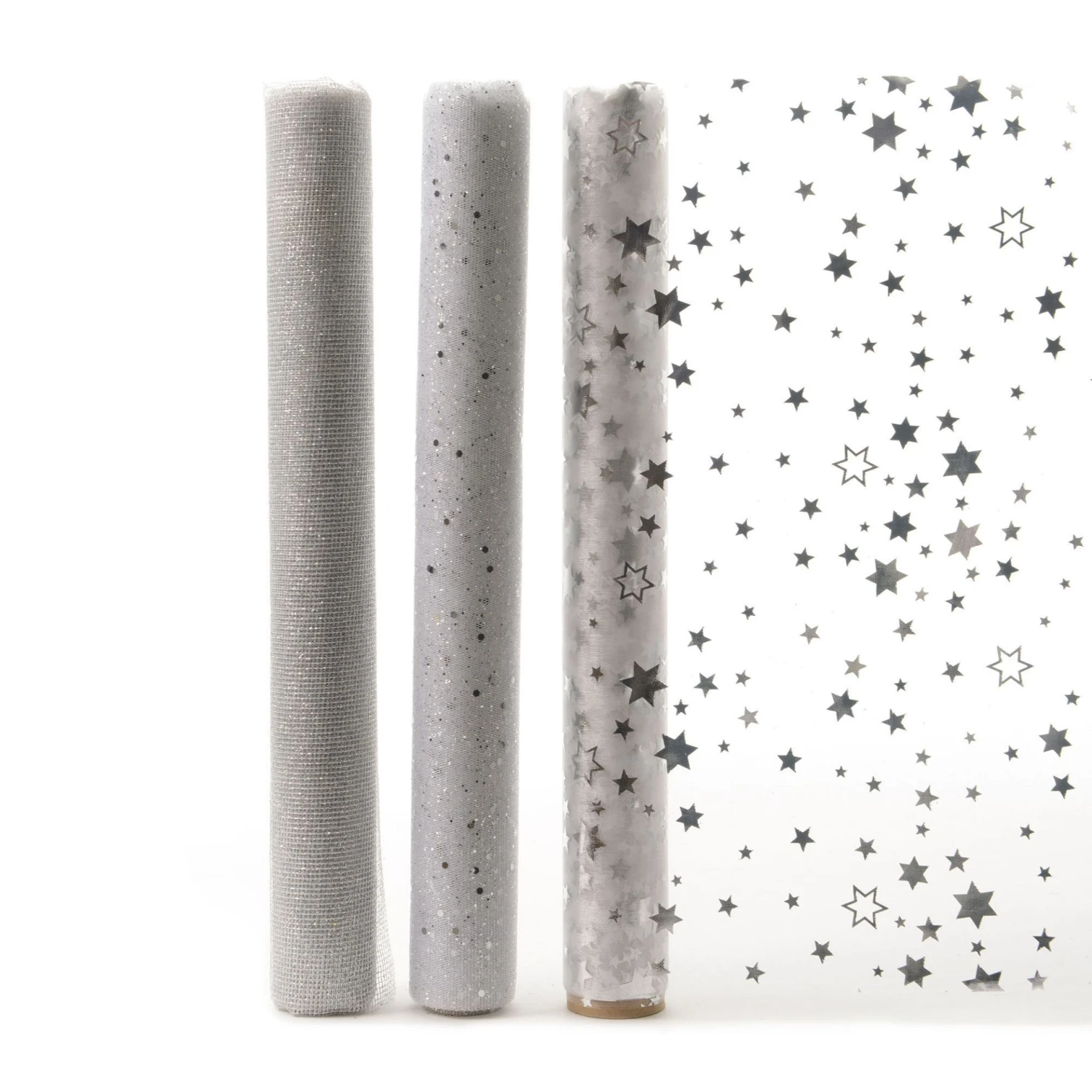 Tessuto con Glitter e Decorazioni. Ideale per confezioni regalo e decorazioni varie. Disponibile in 3 versioni: scegli la tua preferita!