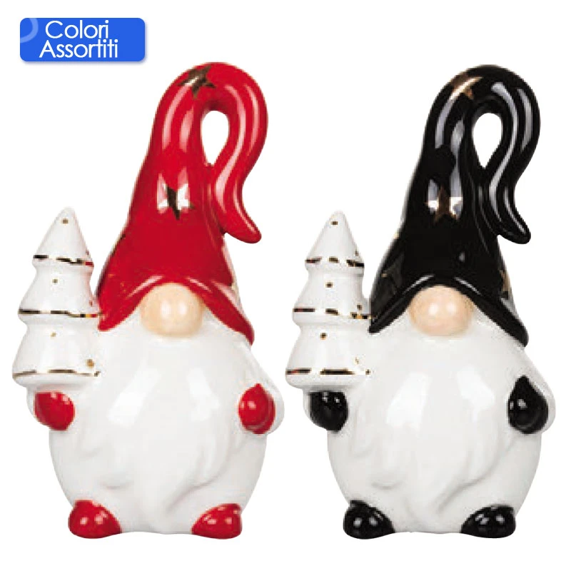 Villa d’Este Gnomo Piccolo di Natale con Albero di Villa d’Este è un piccolo gnomo natalizio che solleva con una mano un alberello. Realizzato in ceramica. Disponibile in 2 colori assortiti: rosso o nero.Â